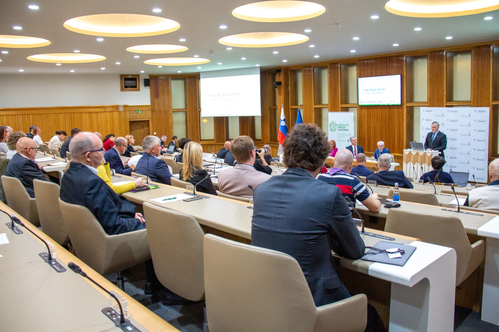 »Veliko govorimo o zeleni energiji in energetskem prehodu. Vprašanje pa je, kaj smo na tem področju že naredili oziroma kakšni so načrti Slovenije. V kolikor ne bomo zagotovili zadostnih virov nizkoogljične energije, bomo ogrozili proizvodnjo materialov in s tem konkurenčnost slovenskega gospodarstva«, je poudaril predsednik GZS Tibor Šimonka v uvodnem nagovoru na posvetu o energetskem prehodu Slovenije, ki so ga 27. oktobra v Državnem svetu skupaj organizirali Strateški svet GZS za energetski prehod, Svet za razvoj pri SAZU in Državni svet. Vlada bo po besedah ministra za infrastrukturo mag. Bojana Kumra do 10. novembra predstavila ukrepe za zamejitev drobnoprodajnih cen elektrike in plina za srednje in velike porabnike. Z interventnim zakonom namerava namreč vlada pohiteti kljub načrtom EU, ki naj bi ukrepe pripravila šele do 24. novembra. »Z interventnim zakonom bomo pohiteli, zato da gospodarstvu damo zelo jasne in pa znosne usmeritve za naslednje leto," je dejal Kumer.